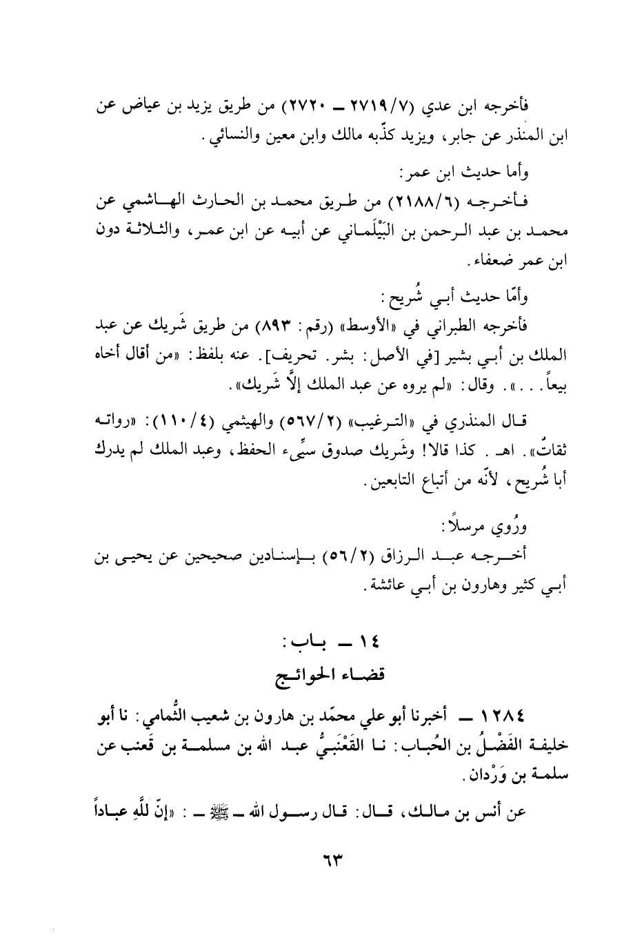 1284 - أخبرنا أبو علي محمد بن هارون بن شعيب الثُّمامي: نا أبو خليفة الفَضْلُ بن الحُباب: نا القَعْنَبيُّ عبد الله بن مسلمة بن قَعنب عن سلمة بن وَرْدان.