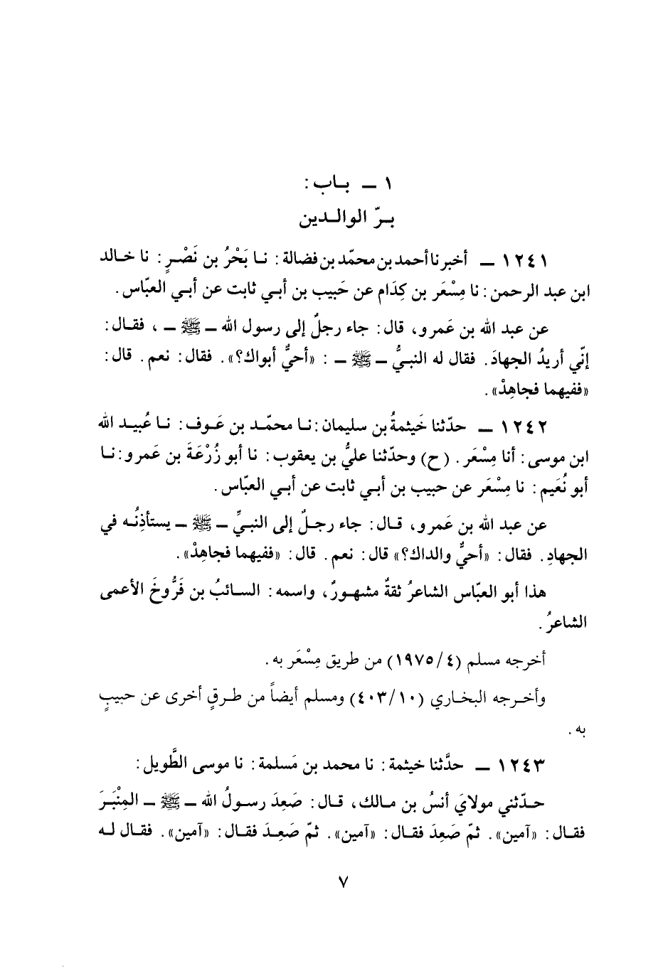 1241 - أخبرنا أحمد بن محمد بن فضالة: نا بَحْرُ بن نَصْرٍ: نا خالد ابن عبد الرحمن: نا مِسْعَر بن كِدَام عن حَبيب بن أبي ثابت عن أبي العبّاس.