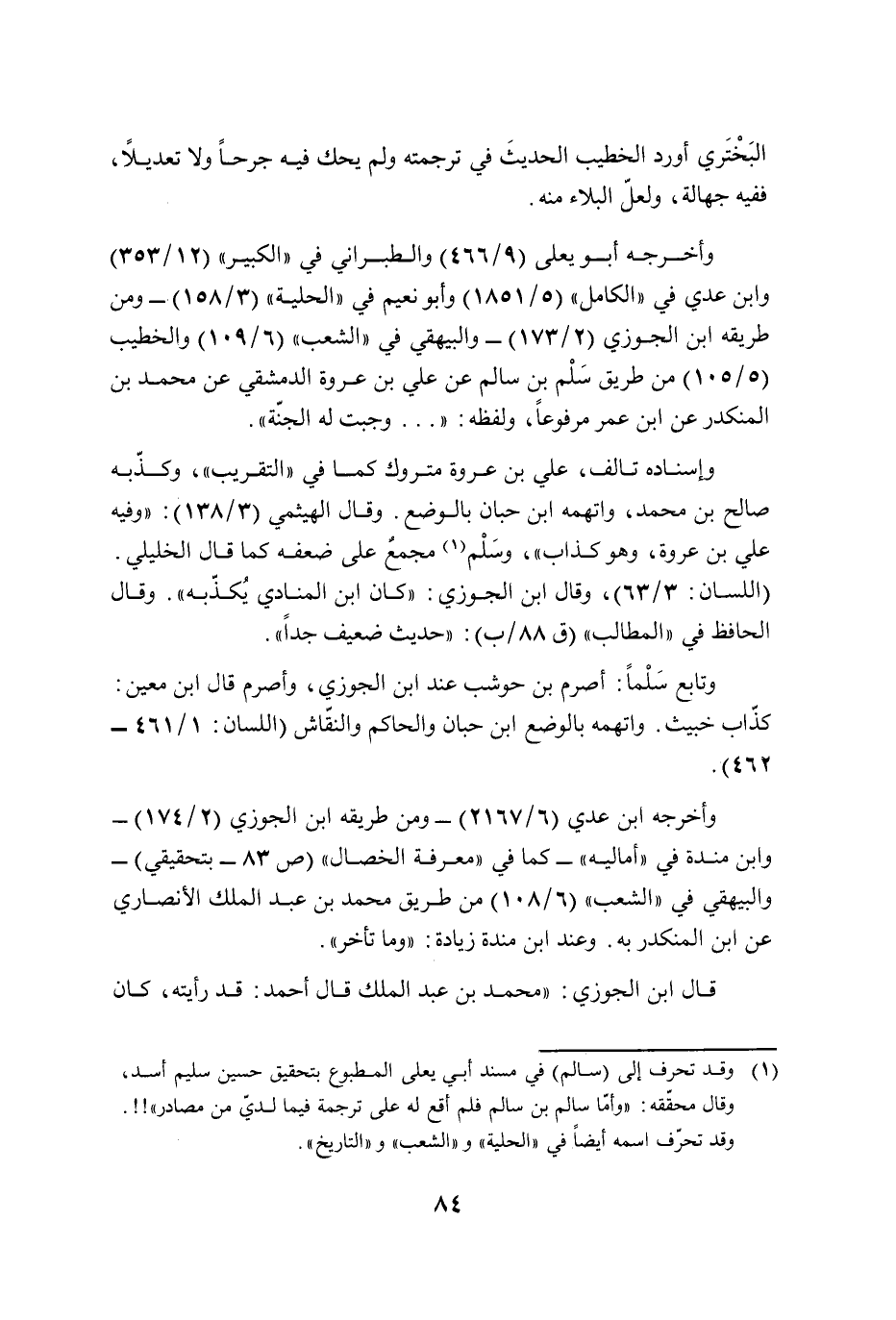 (¬1) وقد تحرف إلى (سالم) في مسند أبي يعلى المطبوع بتحقيق حسين سليم أسد، وقال محقّقه: "وأمّا سالم بن سالم فلم أقع له على ترجمة فيما لديّ من مصادر"!!. وقد تحرّف اسمه أيضًا في "الحلية" و"الشعب" و"التاريخ".