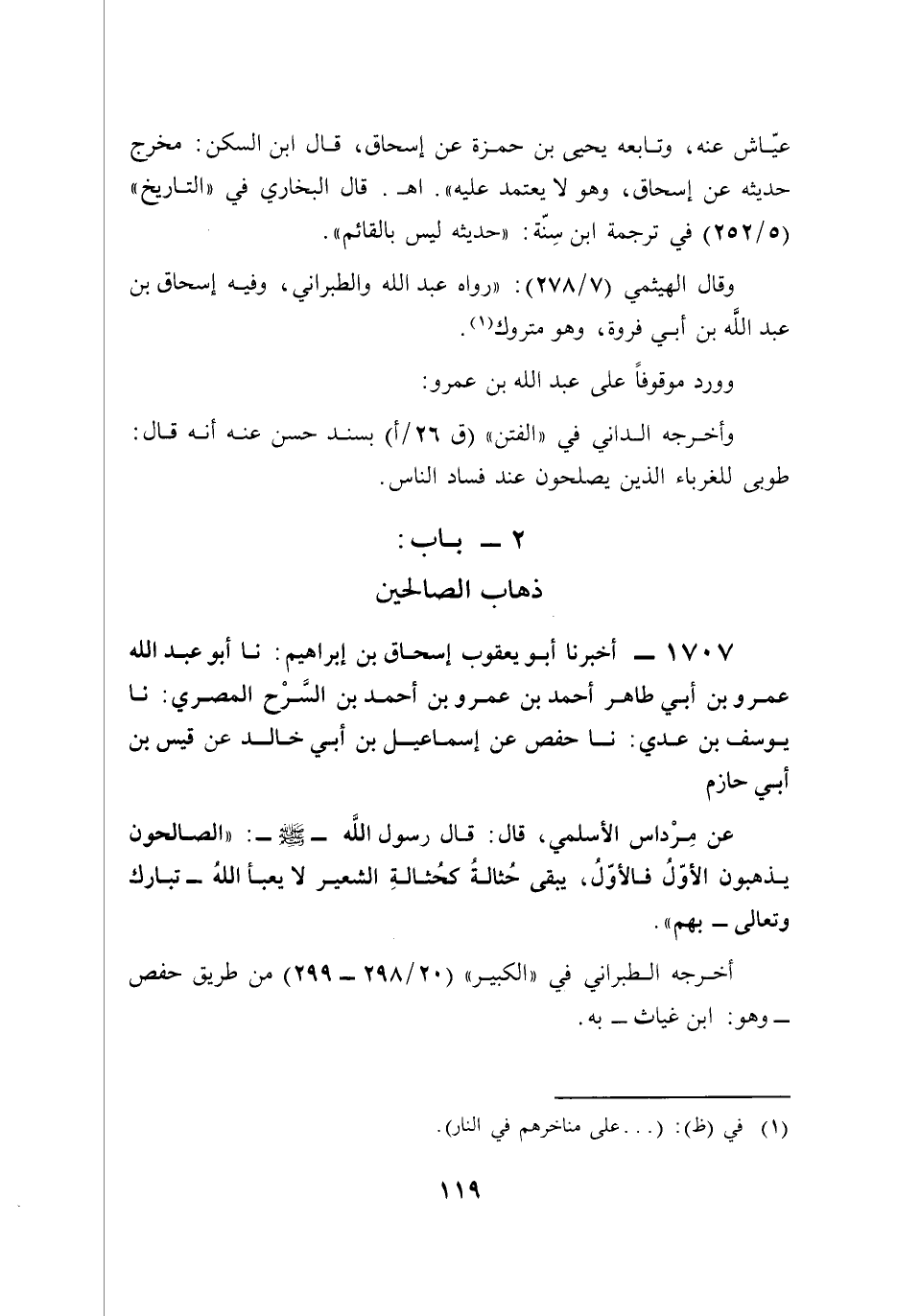 وأخرجه الداني في "الفتن" (ق 26/ أ) بسند حسن عنه أنه قال: طوبى للغرباء الذين يصلحون عند فساد الناس.
