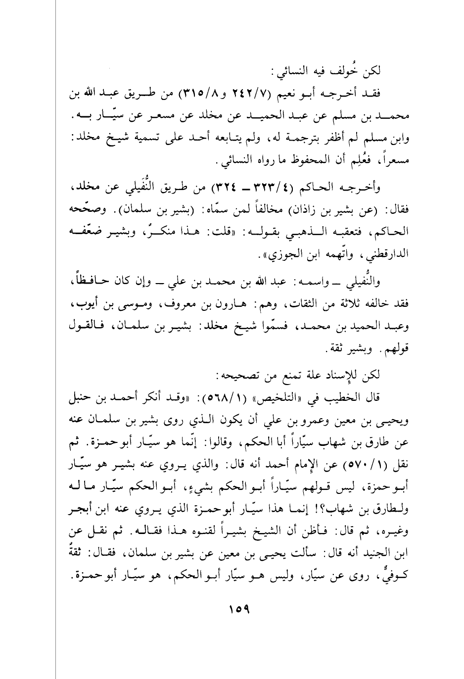 والنُّفيلي -واسمه: عبد الله بن محمد بن علي- وإن كان حافظًا، فقد خالفه ثلاثة من الثقات، وهم: هارون بن معروف، وموسى بن أيوب، وعبد الحميد بن محمد، فسمّوا شيخ مخلد: بشير بن سلمان، فالقول قولهم. وبشير ثقة.