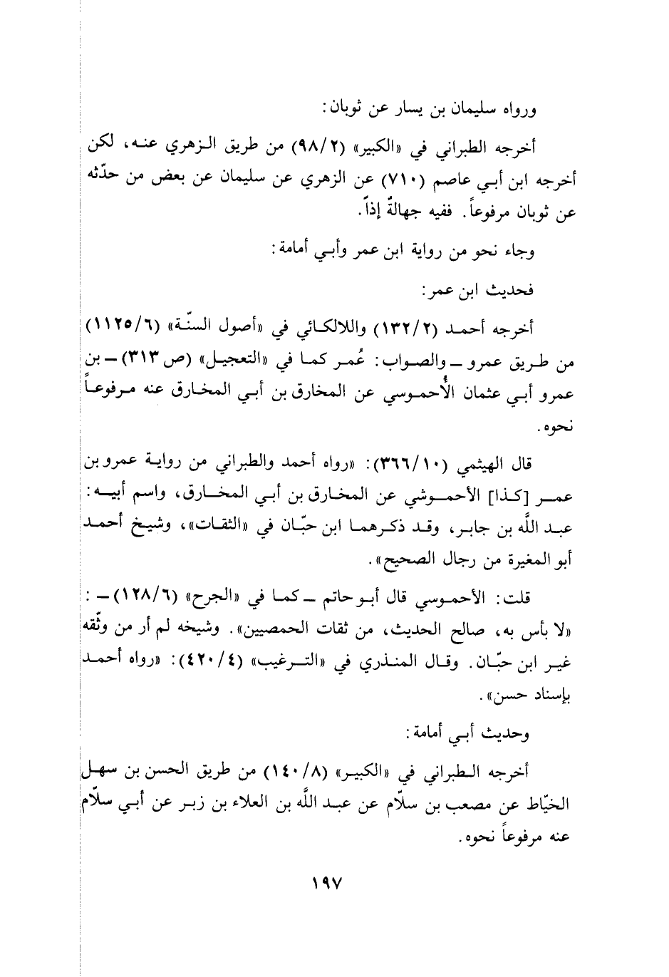 قلت: الأحموسي قال أبو حاتم -كما في "الجرح" (6/ 128) -: "لا بأس به، صالح الحديث، من ثقات الحمصيين". وشيخه لم أر من وثّقه غير ابن حبّان. وقال المنذري في "الترغيب" (4/ 420): "رواه أحمد بإسناد حسن".
