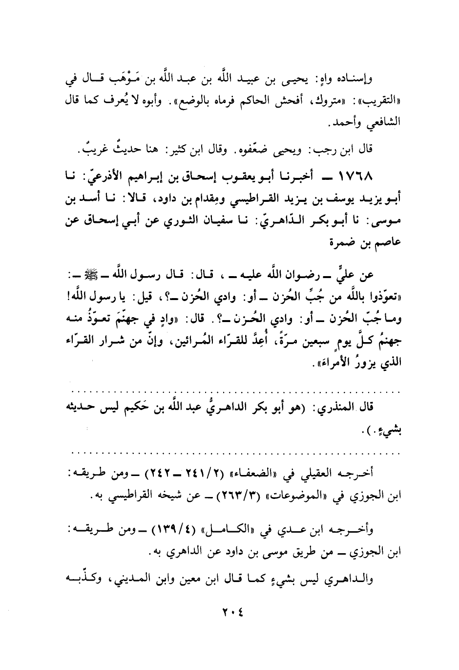 1768 - أخبرنا أبو يعقوب إسحاق بن إبراهيم الأذرعيّ: نا أبو يزيد يوسف بن يزيد القراطيسي ومِقدام بن داود، قالا: نا أسد بن موسى: نا أبو بكر الدّاهريّ: نا سفيان الثوري عن أبي إسحاق عن