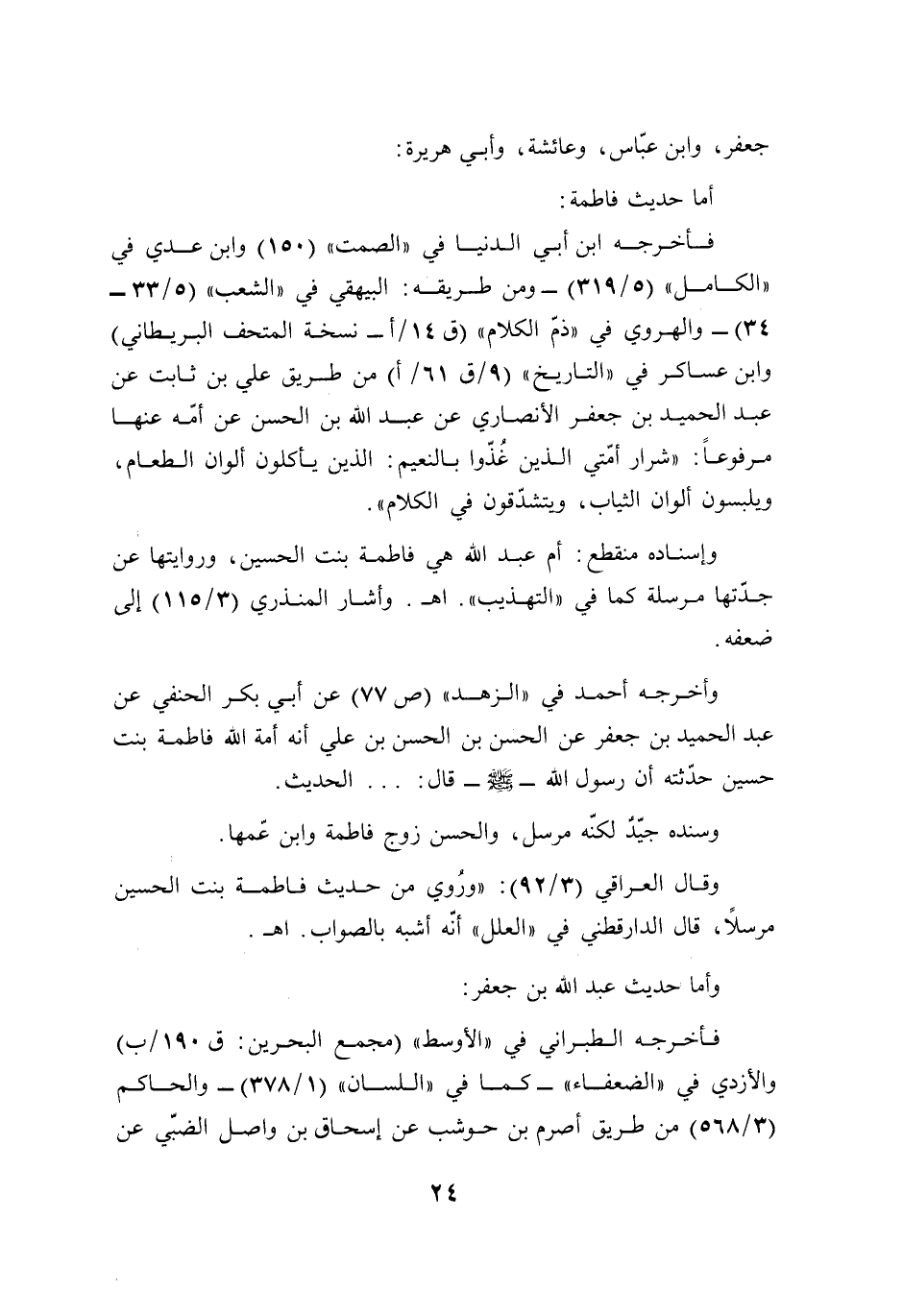 جعفر، وابن عبّاس، وعائشة، وأبي هريرة: