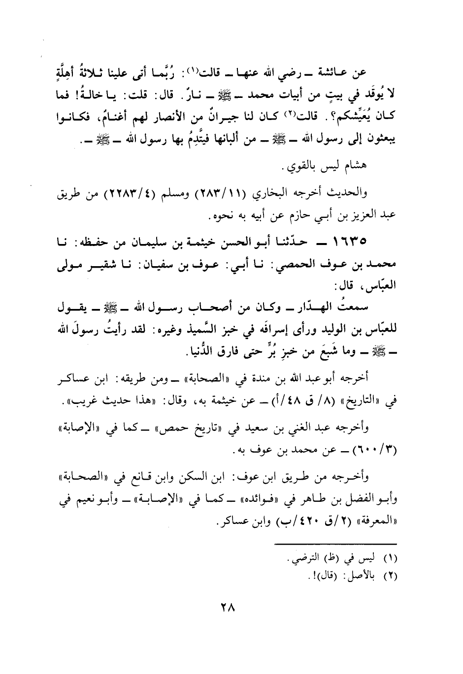 1635 - حدّثنا أبو الحسن خيثمة بن سليمان من حفظه: نا محمَّد بن عوف الحمصي: نا أبي: عوف بن سفيان: نا شقير مولى العبّاس، قال: