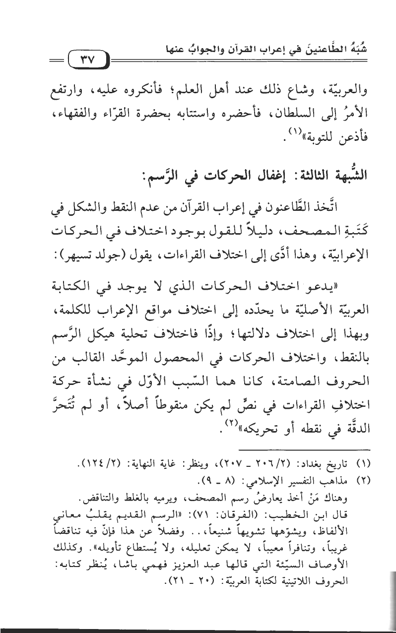 الشُّبهة الثالثة: إغفال الحركات في الرَّسم: