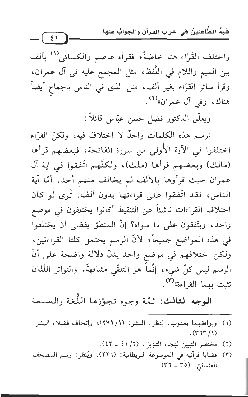ويعلق الدكتور فضل حسن عباس قائلاً: