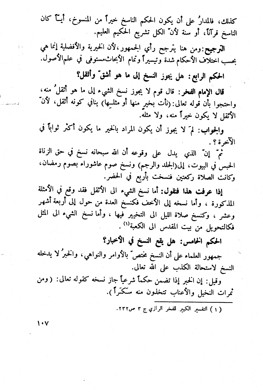 قال الإمام الفخر: قال قوم لا يجوز نسخ الشيء إلى ما هو أثقلُ منه، واحتجوا بأن قوله تعالى: {نَأْتِ بِخَيْرٍ مِّنْهَا أَوْ مِثْلِهَا} ينافي كونه أثقل، لأنّ الثقل لا يكون خيراً منه، ولا مثله.