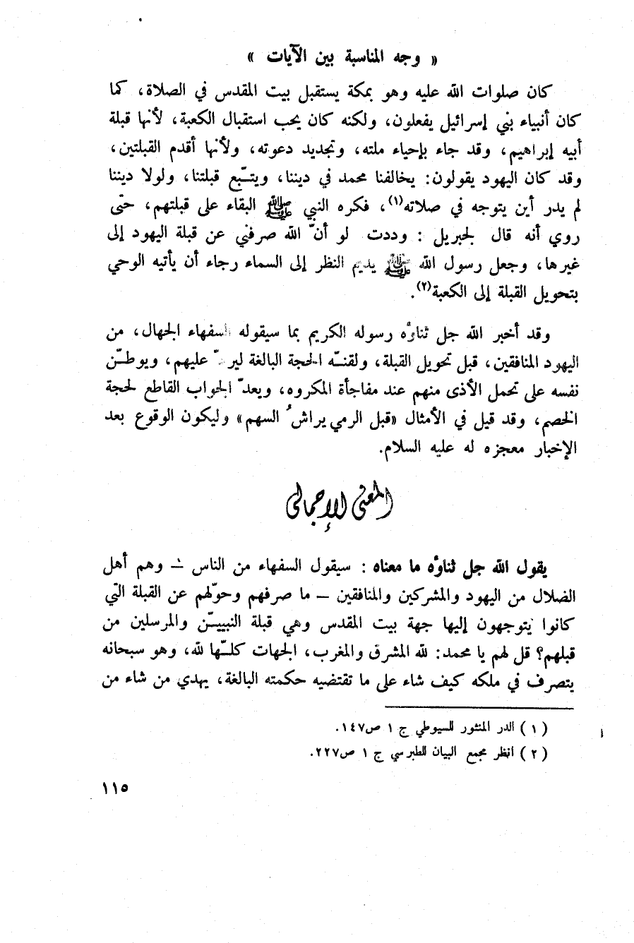 وقد أخبر الله جل ثناؤه رسوله الكريم بما سيقوله السفهاء الجهال، من اليهود المنافقين، قبل تحويل القبلة، ولقنّه الحجة البالغة ليردّ عليهم، ويوطّن نفسه على تحمل الأذى منهم عند مفاجأة المكروه، ويعدّ الجواب القاطع لحجة الخصم، وقد قيل في الأمثال «مثل الرمي يراشُ السهم» وليكون الوقوع بعد الإخبار معجزة له عليه السلام.