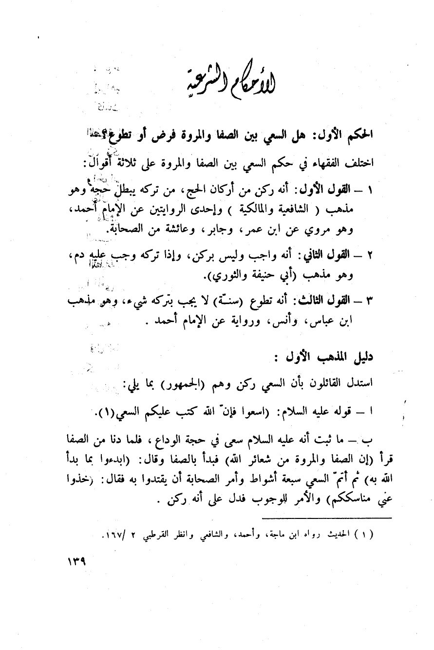 الحكم الأول: هل السعي بين الصفا والمروة فرض أو تطوع؟