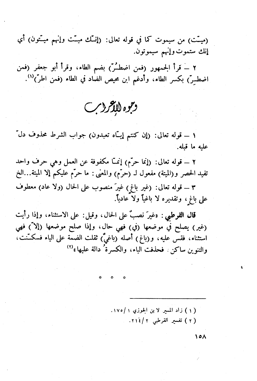 3 - قوله تعالى: {غَيْرَ بَاغٍ} غيرَ منصوب على الحال (ولا عاد) معطوف على باغٍ وتقديره لا باغياً ولا عادياً.