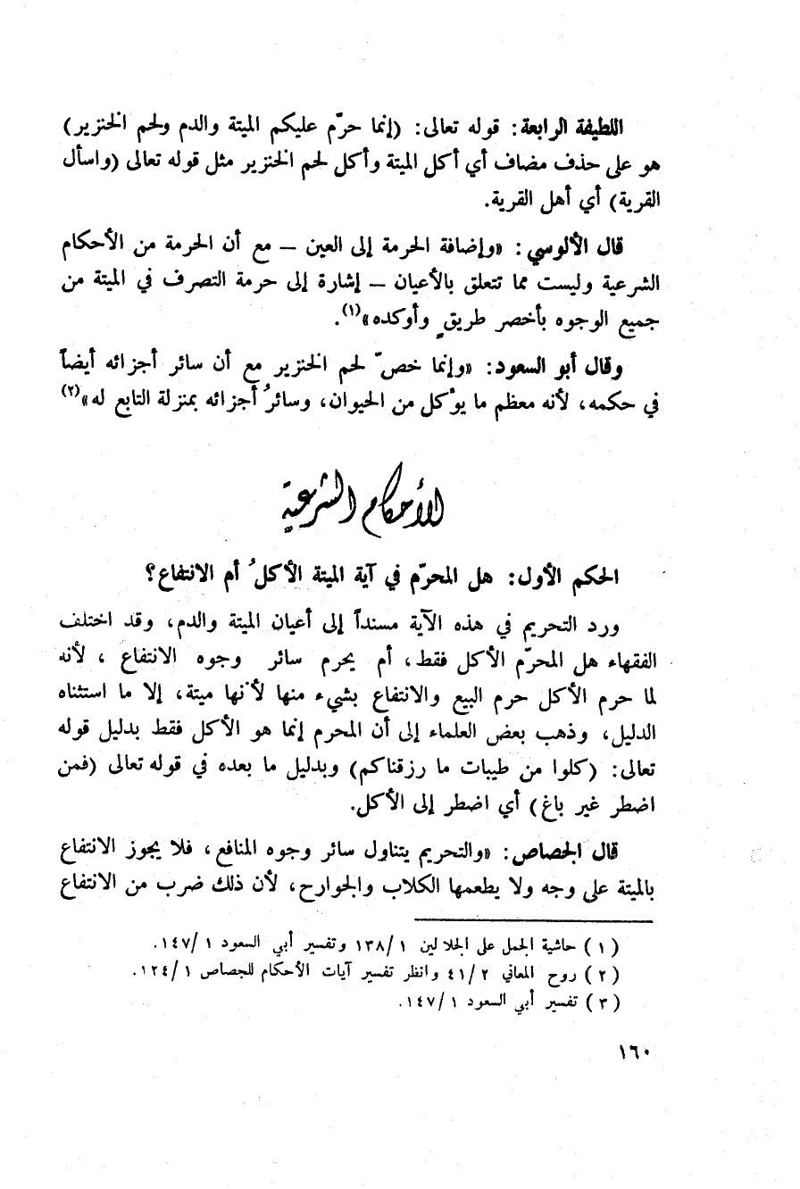 الحكم الأول: هل المحرّم في آية الميتة الأكلُ أم الانتفاع؟