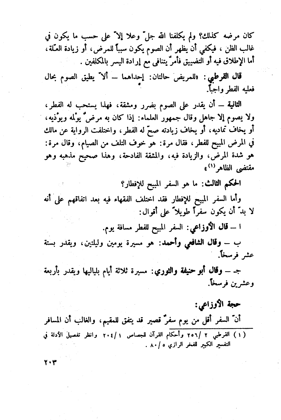 أ - قال الأوزاعي: السفر المبيح للفطر مسافة يوم.