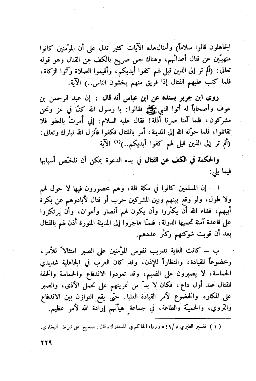 الجَاهِلُونَ قَالُواْ سَلاَماً} [الفرقان: 63] وأمثال هذه الآيات كثير تدل على أن المؤمنين كانوا منهيّين ن قتال أعدائهم، وهناك نص صريح بالكف عن القتال وهو قوله تعالى: