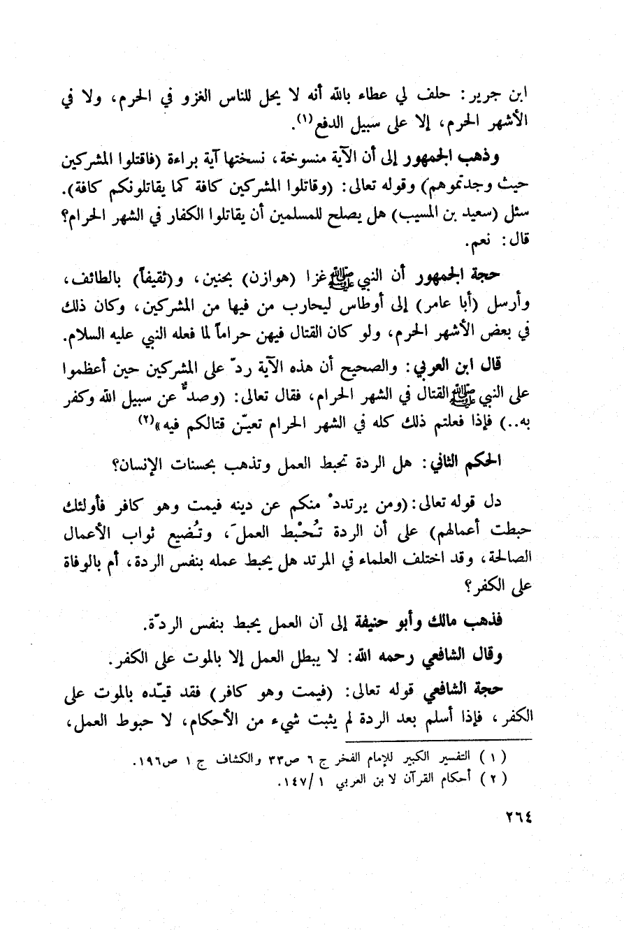 ابن جرير: حلف لي عطاء بالله أنه لا يحل للناس الغزو في الحرم، ولا في الأشهر الحرم، إلا على سبيل الدفع.