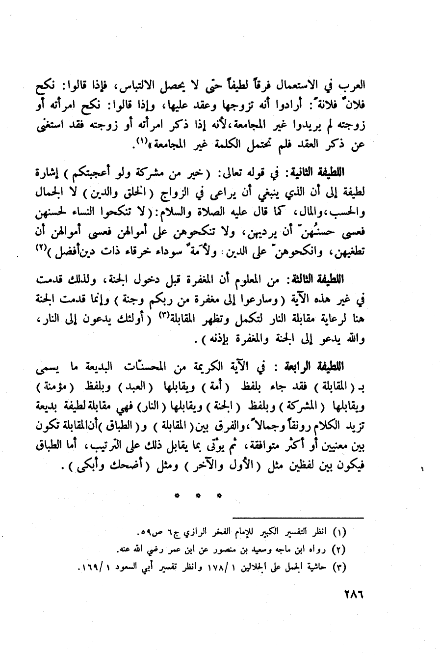 اللطيفة الثانية: في قوله تعالى: {خَيْرٌ مِّن مُّشْرِكٍ وَلَوْ أَعْجَبَكُمْ} إشارة لطيفة إلى أن الذي ينبغي أن يراعي في الزواج (الخلق والدين) لا الجمال والحسب، والمال، كما قال عَلَيْهِ الصَّلَاة وَالسَّلَام ُ: «لا تنكحوا النساء لحسنهن فعسى حسنُهنّ أن يرديهن، ولا تنكحوهن على أموالهن فعسى أموالهن أن تطغيهن، وانكحوهنّ على الدين ولأَمةٌ سوداء خرقاء ذات دين أفضل» .