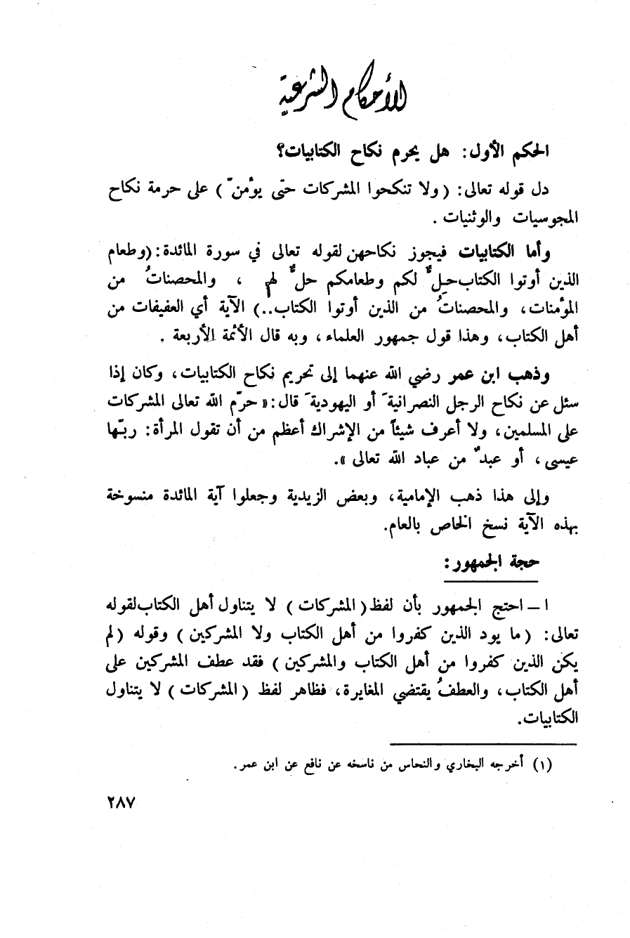 الحكم الأول: هل يحرم نكاح الكتابيات؟
