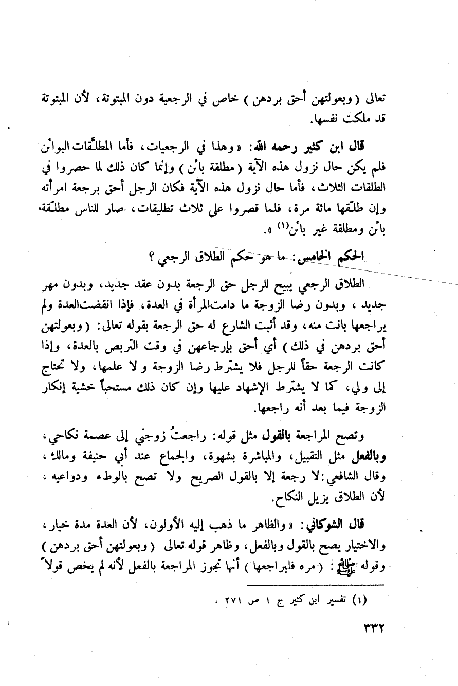 الحكم الخامس: ما هو حكم الطلاق الرجعي؟