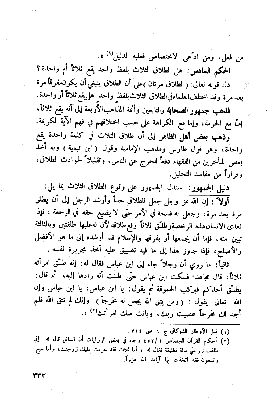 الحكم السادس: هل الطلاق الثلاث بلفظ واحد يقع ثلاثاً أم واحدة؟