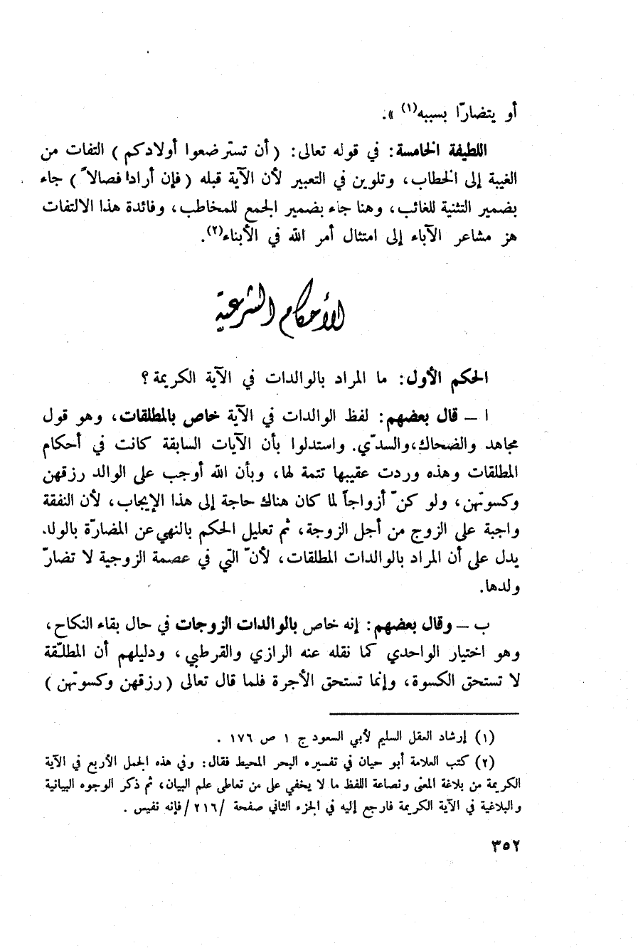 الحكم الأول: ما المراد بالوالدات في الآية الكريمة؟