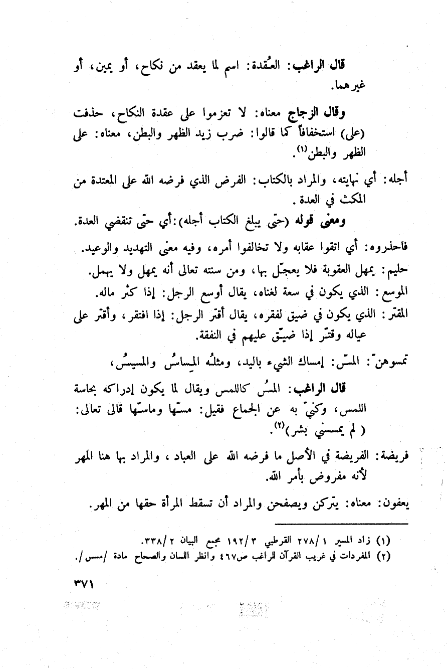 وقال الزجاج معناه: لا تعزموا على عقدة النكاح، حذفت (على) استخافاً كما قالوا: ضرب زيد الظهر والبطن، معناه: على الظهر والبطن.
