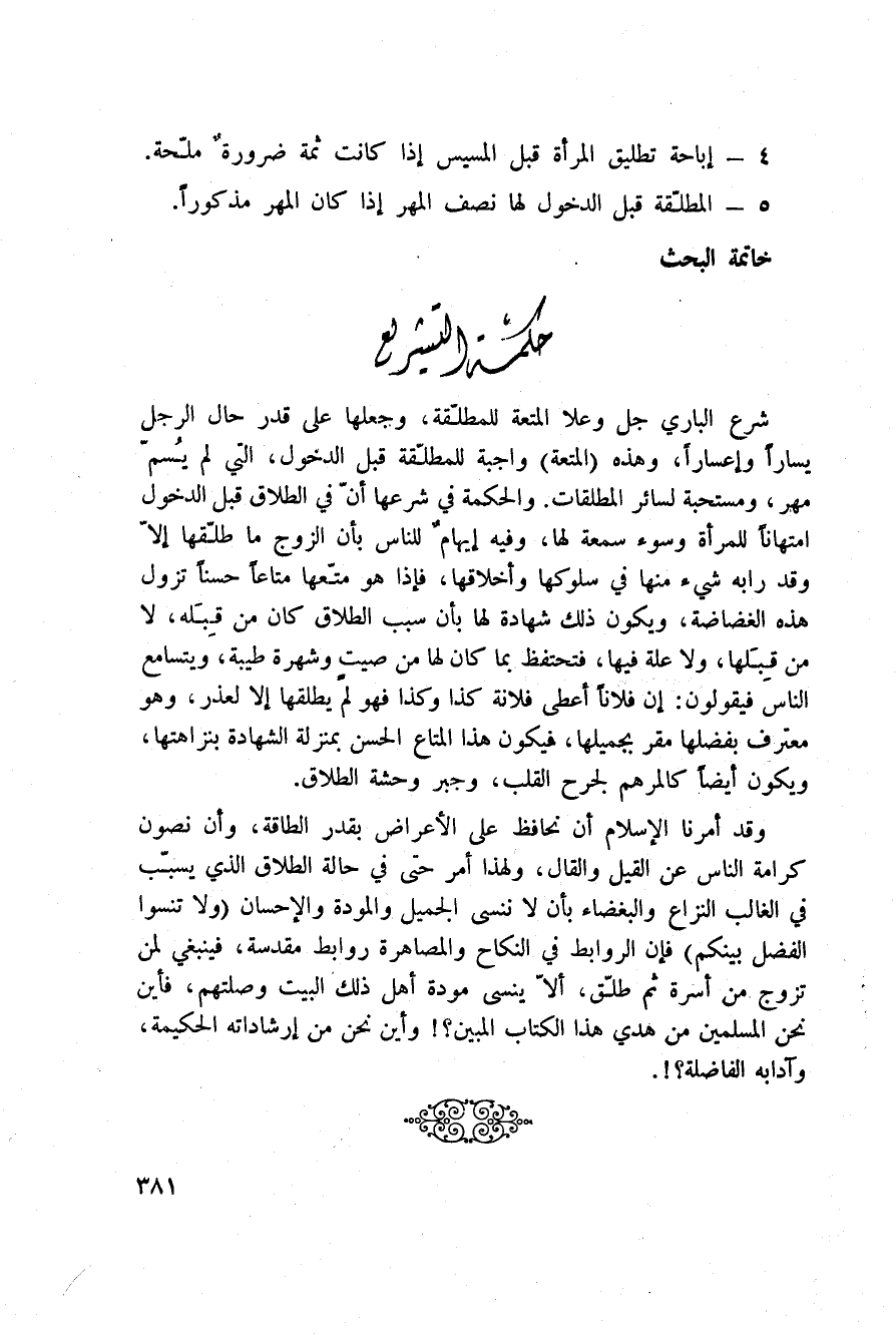 4 - إباحة تطليق المرأة قبل المسيس إذا كانت ثمة ضرورةٌ ملحة.