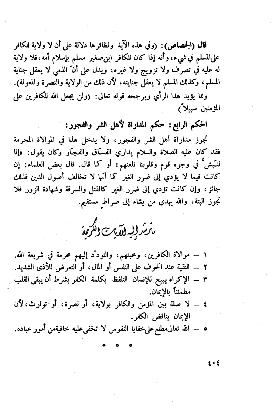4 - لا صلة بين المؤمن والكفر بولاية، أو نصرة، أو توارث، لأن الإيمان يناقض الكفر.