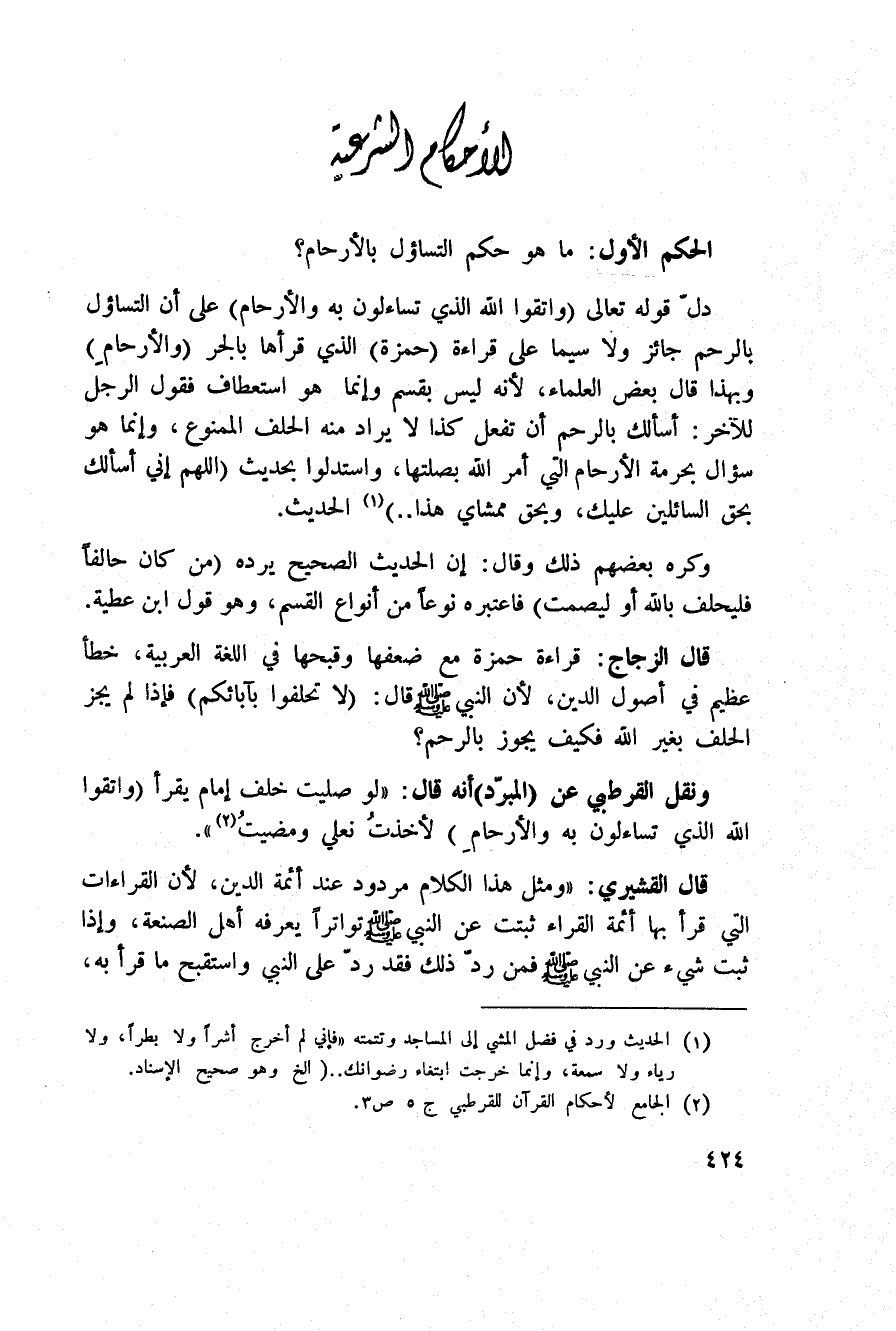 الحكم الأول: ما هو حكم التساؤل بالأرحام؟