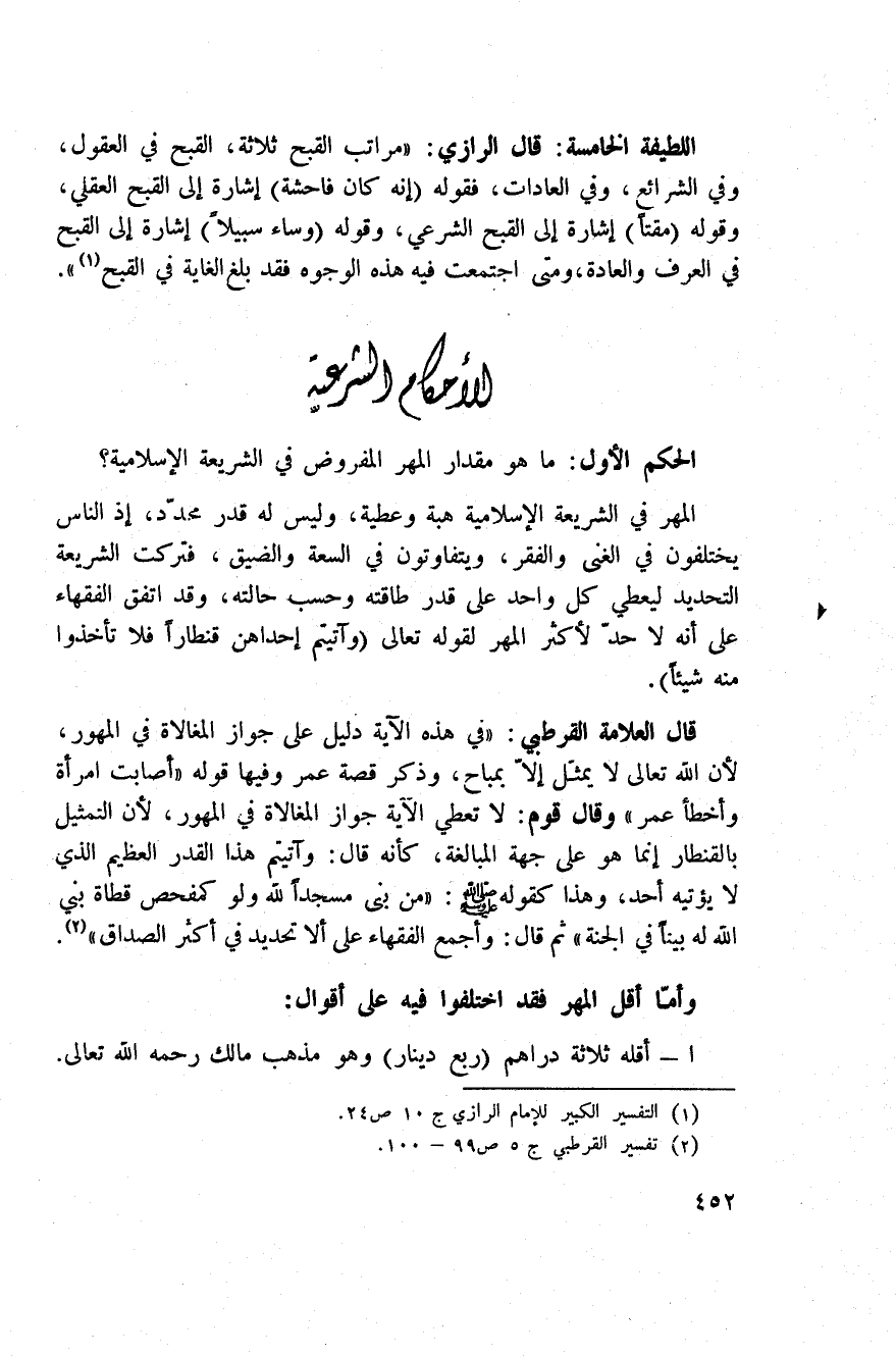 الحكم الأول: ما هو مقدار المهر المفروض في الشريعة الإسلامية؟