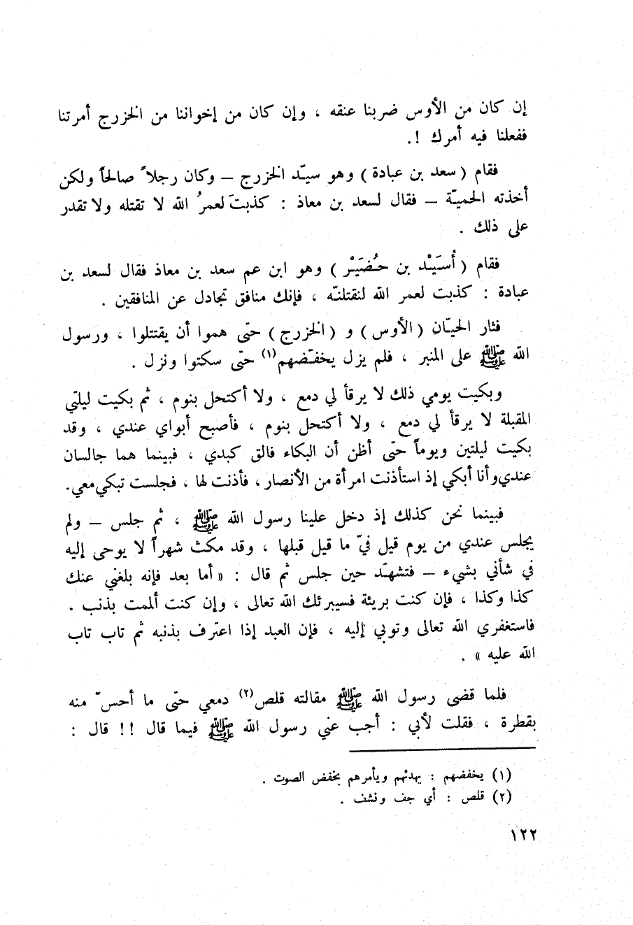 فلما قضى رسول الله صَلَّى اللَّهُ عَلَيْهِ وَسَلَّم َ مقالته قلص دمعي حتى ما أحسّ منه بقطرة، فقلت لأبي: أجب عني رسول الله صَلَّى اللَّهُ عَلَيْهِ وَسَلَّم َ فيما قال} ! قال: