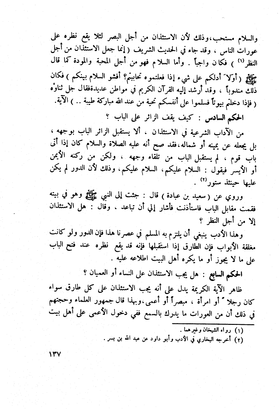الحكم السابع: هل يجب الاستئذان على النساء أو العميان؟