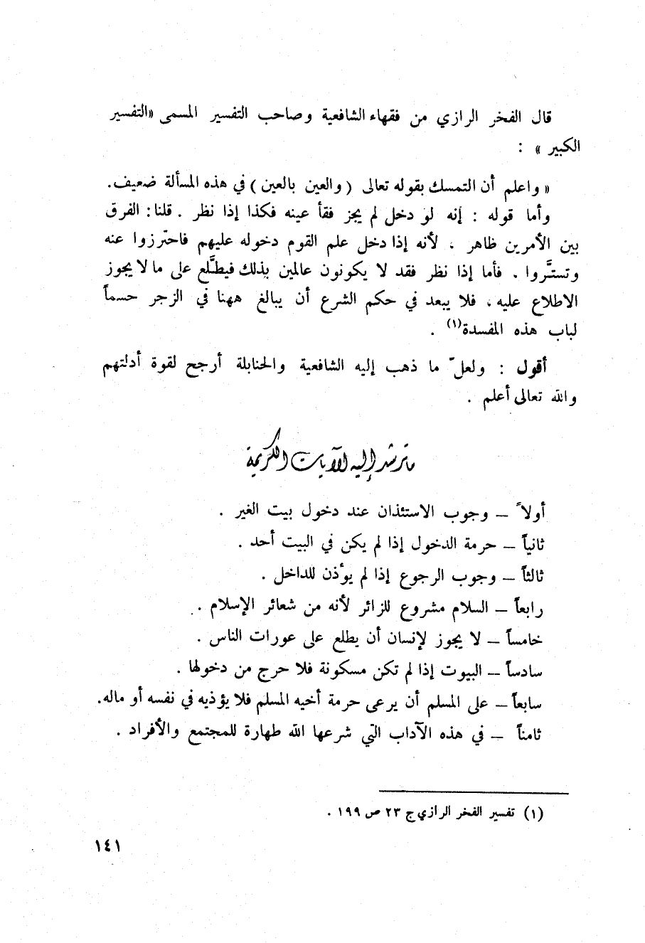 أولاً - وجوب الاستئذان عند دخول ببيت الغير.