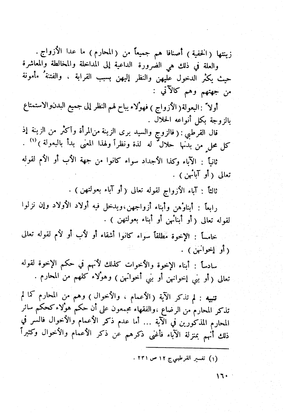أولاً: البعولة (الأزواج) فهؤلاء يباح لهم النظر إلى جميع البدن والاستمتاع بالزوجة بكل أنواعه الحلال.