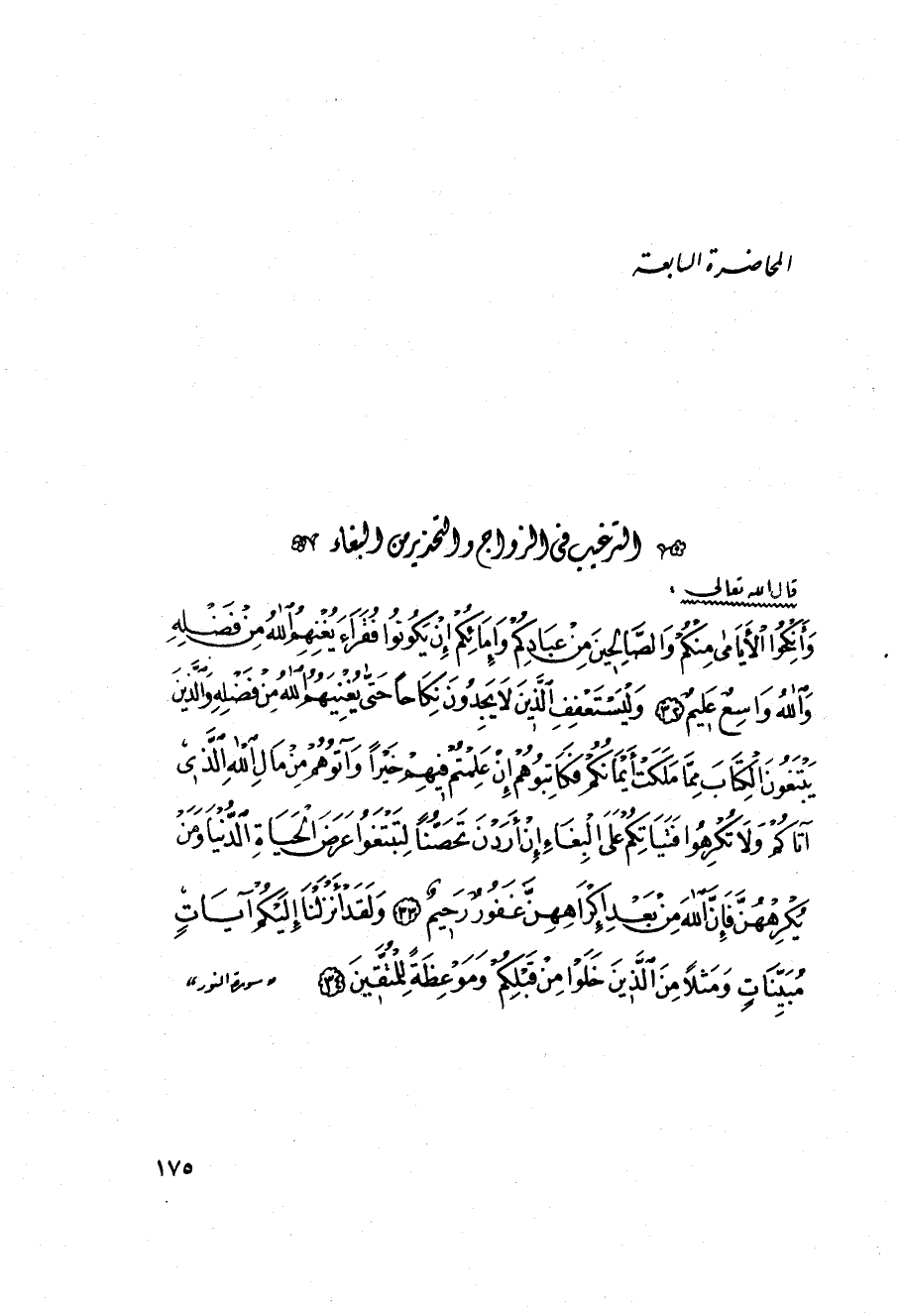 [7] الترغيب في الزواج والتحذير من البغاء