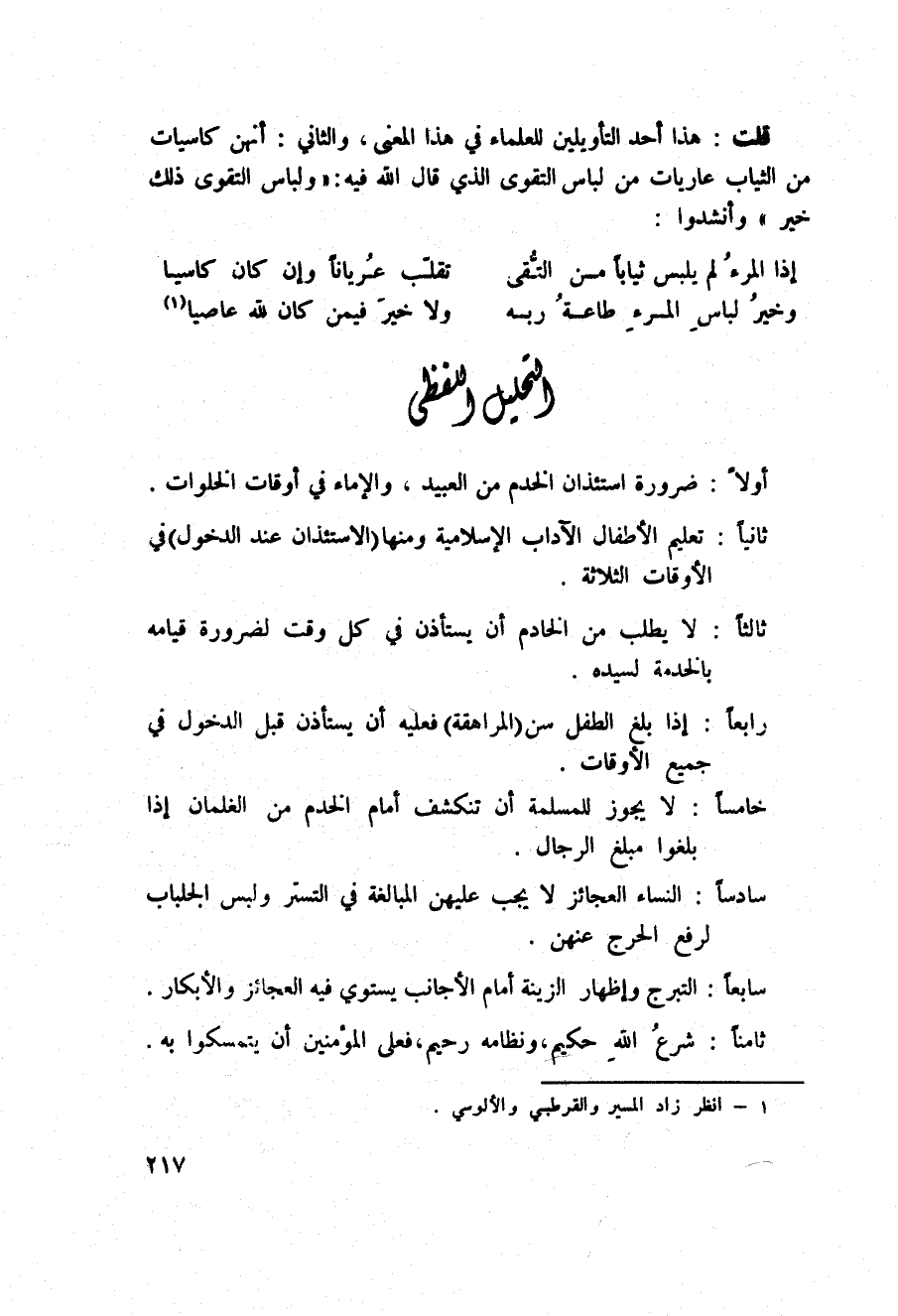 أولاً: ضرورة استئذان الخدم من العبيد، والإماء في أوقات الخلوات.