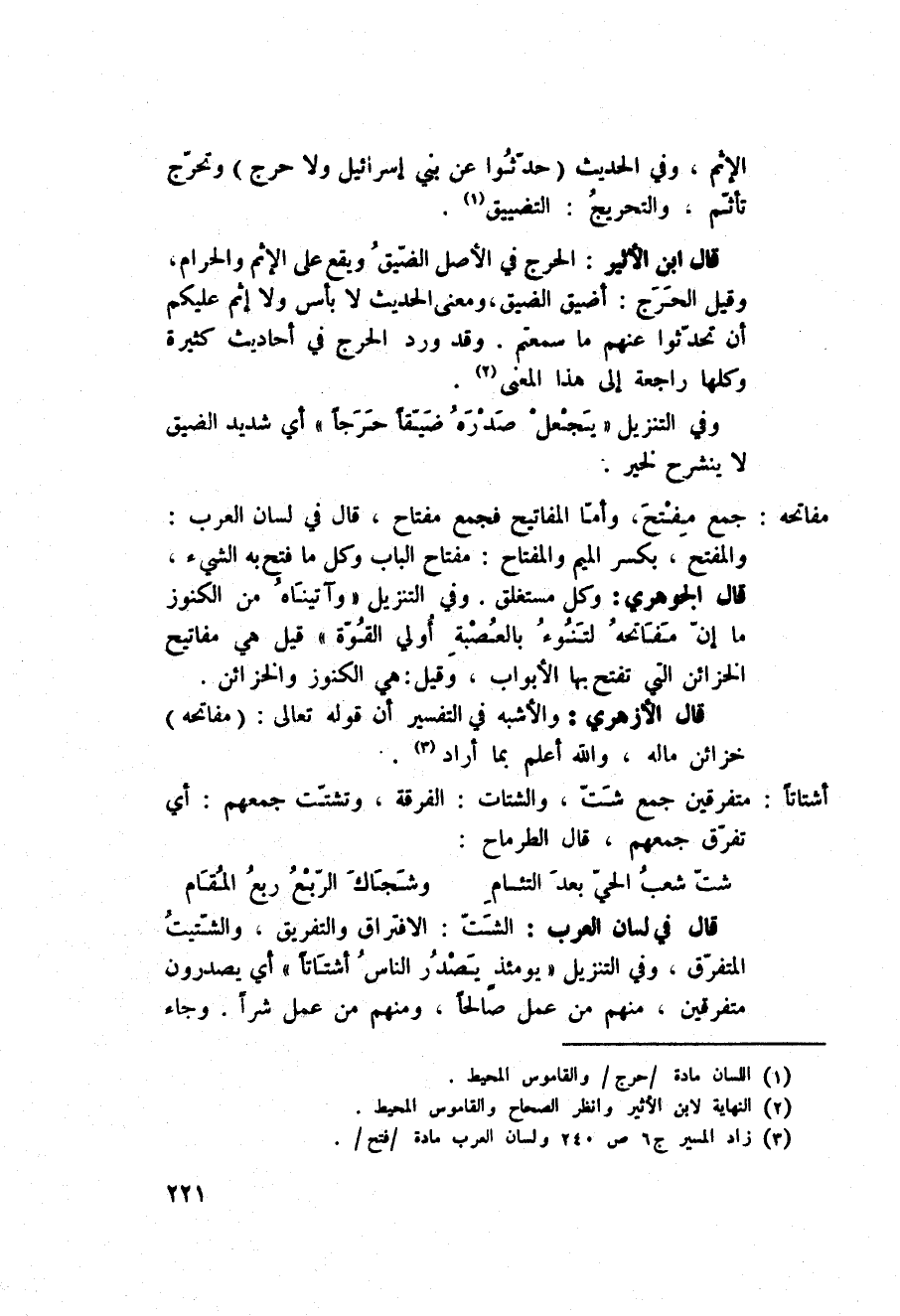 قال ابن الأثير: الحرج في الأصل الضّيقُ ويقع على الإثم والحرام، وقيل الحَرَج: أضيق الضيق، ومعنى الحديث لا بأس ولا إثم عليكم أن تحدّثوا عنهم ما سمعتم. وقد ورد الحرج في أحاديث كثيرة وكلها راجعة إلى هذا المعنى.