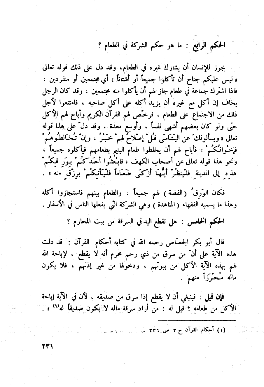 الحكم الرابع: ما هو حكم الشركة في الطعام؟