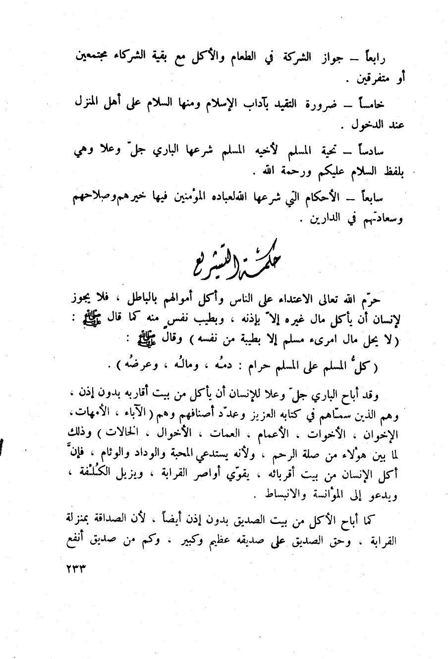 سابعاً - الأحكام التي شرعها الله لعباده المؤمنين فيها خيرهم وصلاحهم وسعادتهم في الدراين.