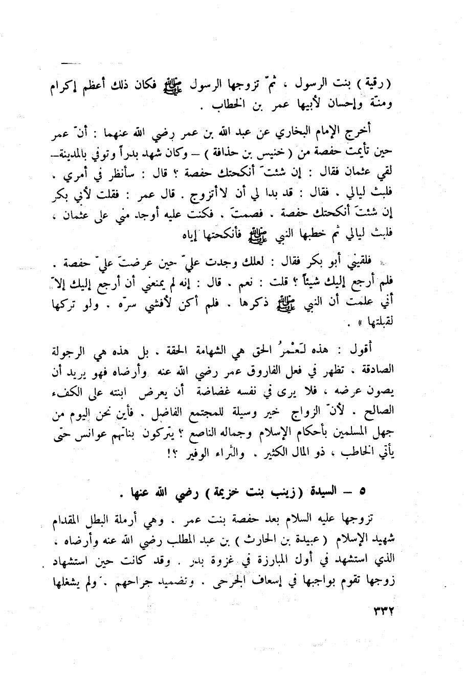 (رقية) بنت الرسول، ثم تزوجها الرسول صَلَّى اللَّهُ عَلَيْهِ وَسَلَّم َ فكان ذلك أعظم إكرام ومنّة وإحسان لأبيها عمر بن الخطاب.