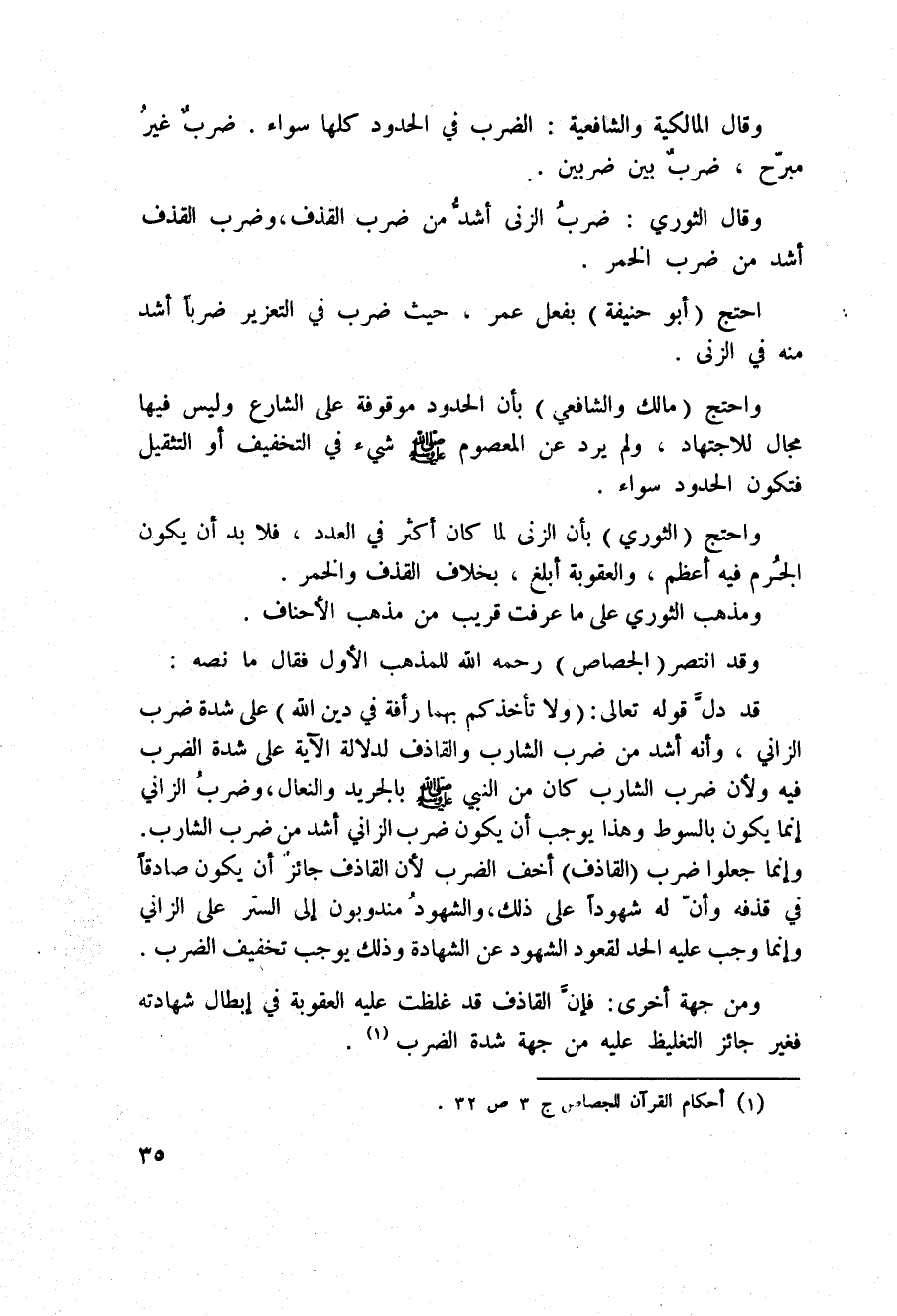 واحتج (مالك والشافعي) بأن الحدود موقوفة على الشاعر وليس فيها مجال للاجتهاد، ولم يرد عن المعصوم صَلَّى اللَّهُ عَلَيْهِ وَسَلَّم َ شيء في التخفيف أو التثقيل فتكون الحدود سواء.