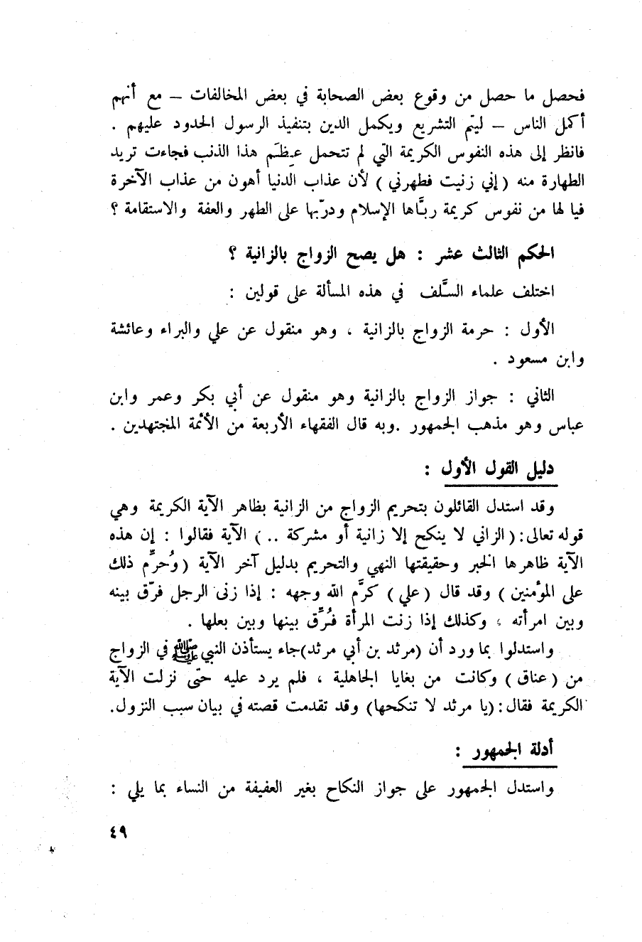 الحكم الثالث عشر: هل يصح الزواج بالزانية؟