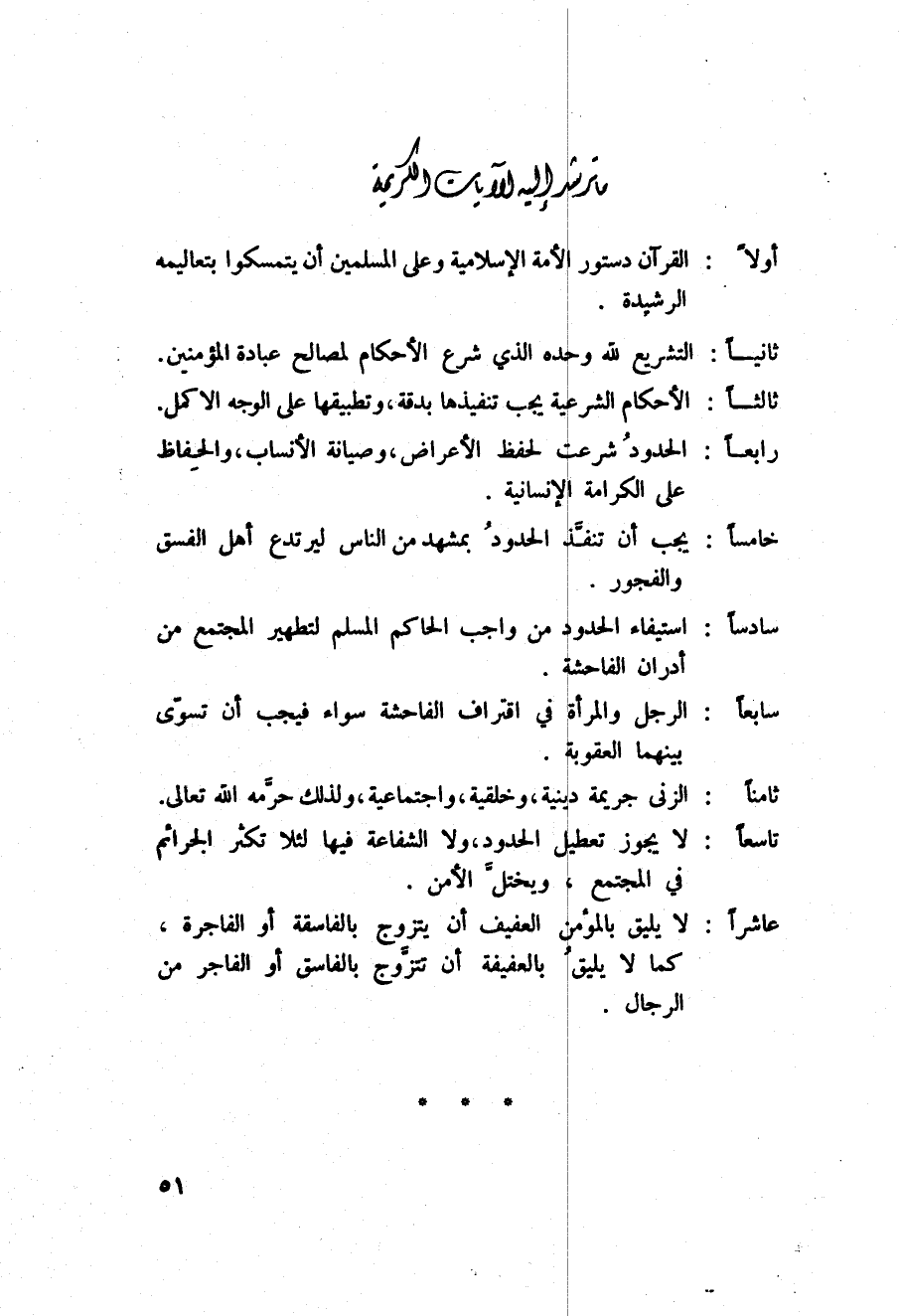 أولاً - القرآن دستور الأمة الإسلامية وعلى المسلمين أن يتمسكوا بتعاليمه الرشيدة.