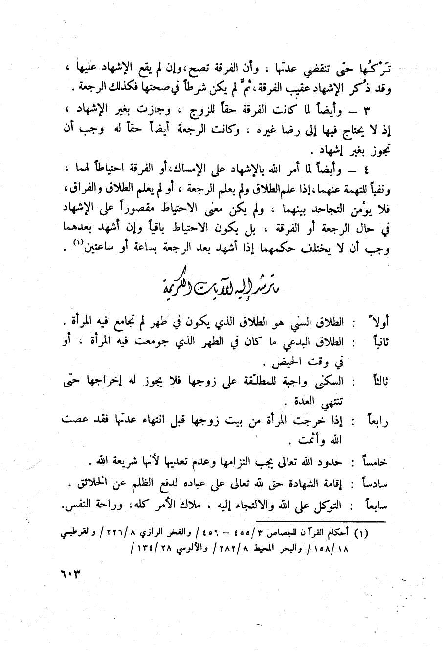 4 - وأيضاً لما أمر الله بالإشهاد على الإمساك، أو الفرقة احتياطاً لهما، ونفياً للتهمة عنهما، إذا علم الطلاق ولم يعلم الرجعة، أو لم يعلم الطلاق والفراق، فلا يؤمن التجاحد بينهما، ولم يكن معنى الاحتياط مقصوراً على الإشهاد في حال الرجعة أو الفرقة، بل يكون الاحتياط باقياً وإن أشهد بعدهما وجب أن لا يختلف حكمهما إذا أشهد بعد الرجعة بساعة أو ساعتين.