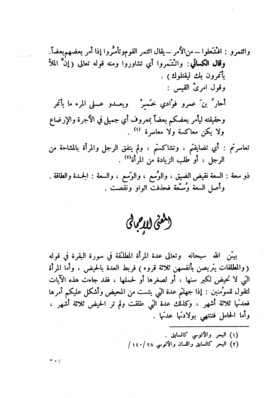 وحقيقته ليأمر بعضكم بعضاً بمعروف أي جميل في الأجرة والإرضاع ولا يكن معاكسة ولا معاسرة.