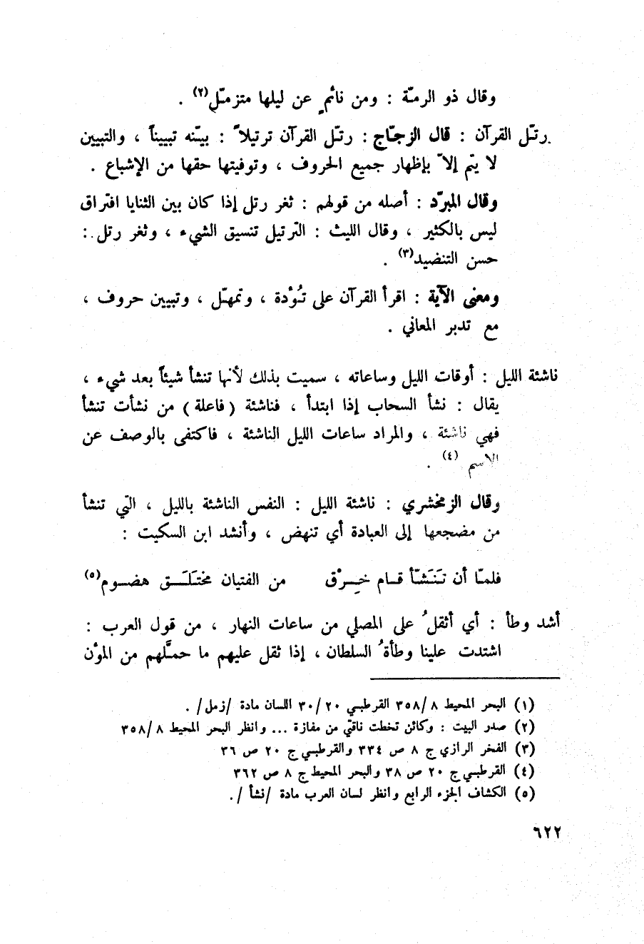 وقال الزمخشري: ناشئة الليل: النفس الناشئة بالليل، التي تنشأ من مضجعها إلى العبادة أي تنهض، وأنشد ابن السكيت: