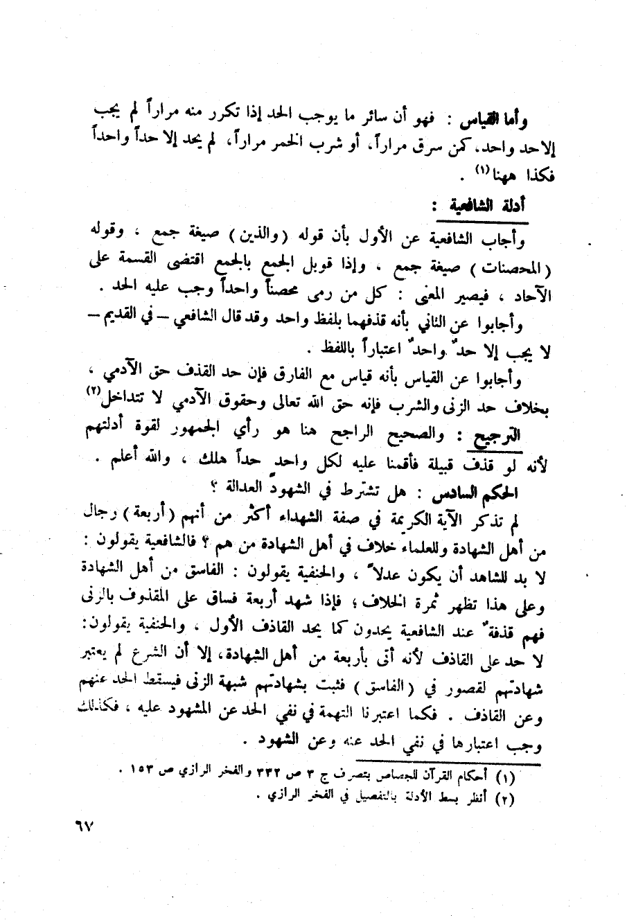 وأجاب الشافعية عن الأول بان قوله (والذين) صيغة جمع، وإذا قوبل الجمع بالجمع اقتضى القسمة على الآحاد، فيصير المعنى: كل من رمى محصناً واحداً وجب عليه الحد.