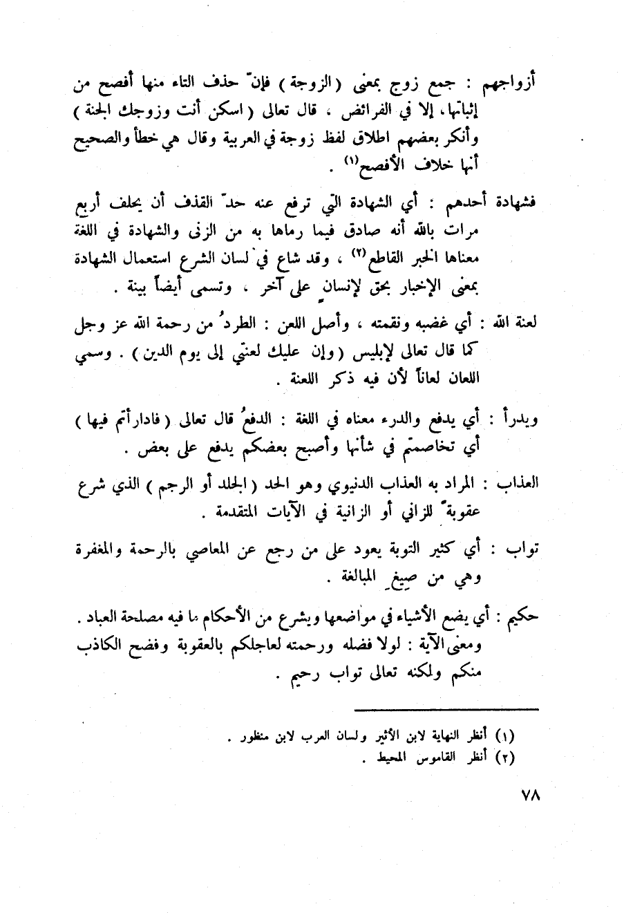 {فَشَهَادَةُ أَحَدِهِمْ} : أي الشهادة التي ترفع عنه حدّ القذف أن يحلف أربع مرات بالله أنه صادق فيما رماها به من الزنى والشهادة في اللغة معناها الخبر القاطع، وقد شاع في لسان الشرع استعمال الشهادة بمعنى الإخبار بحق لإنسانٍ على آخر، وتسمى أيضاً بينة.