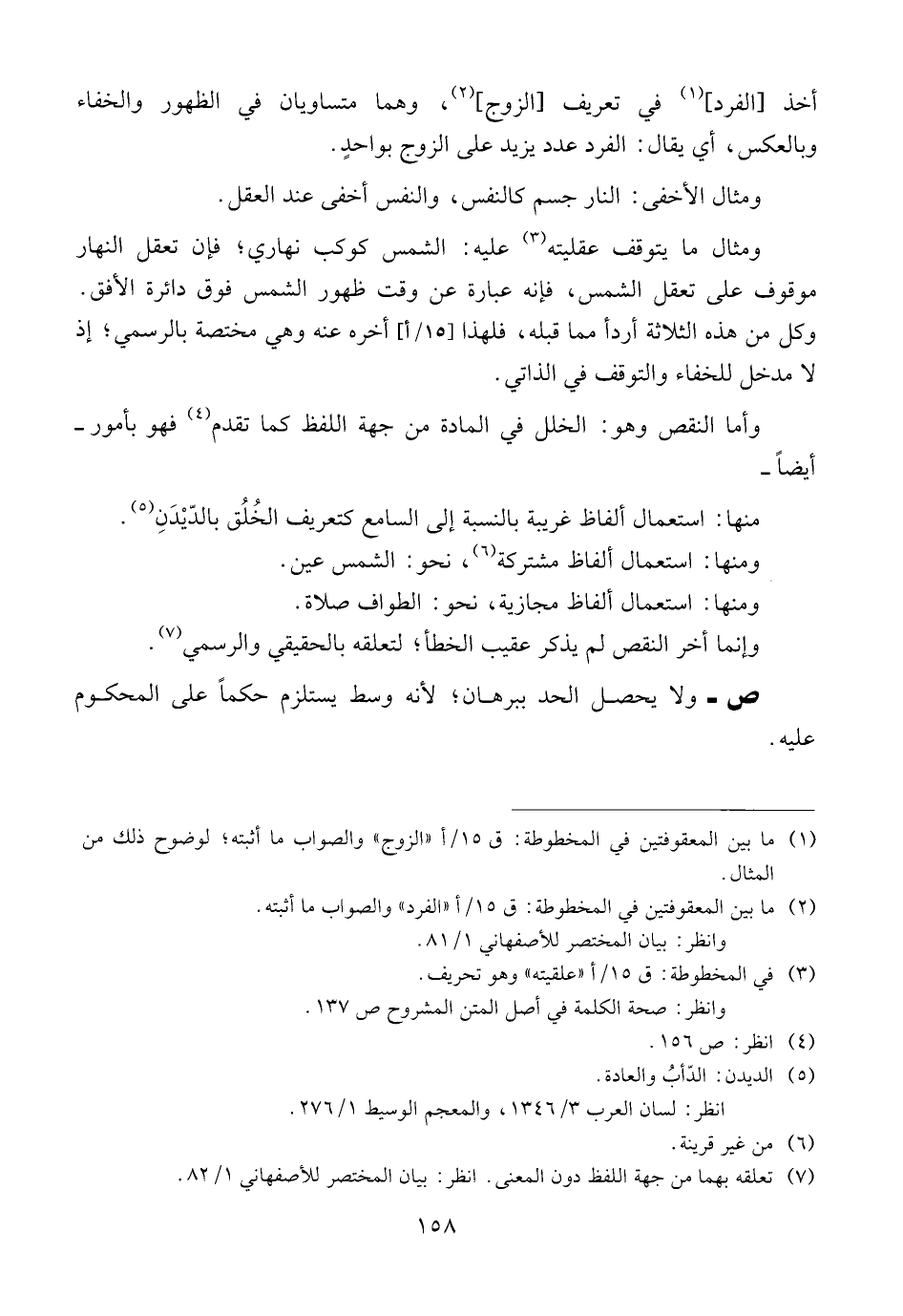 أخذ [الفرد] في تعريف (الزوج)، وهما متساويان في الظهور والخفاء وبالعكس، أي يقال: الفرد عدد يزيد على الزوج بواحد.