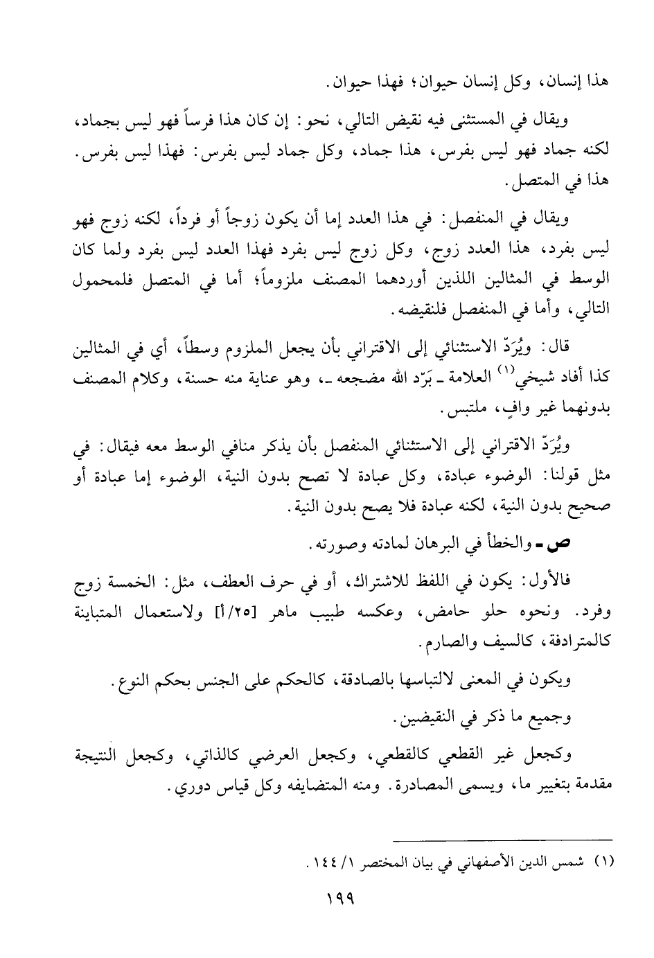 قال: ويرد الاستثنائي إلى الاقتراني بأن يجعل الملزوم وسطا، أي في المثالين كذا أفاد شيخي العلامة -برد الله مضجعه-، وهو عناية منه حسنة، وكلام المصنف بدونهما غير واف، ملتبس.
