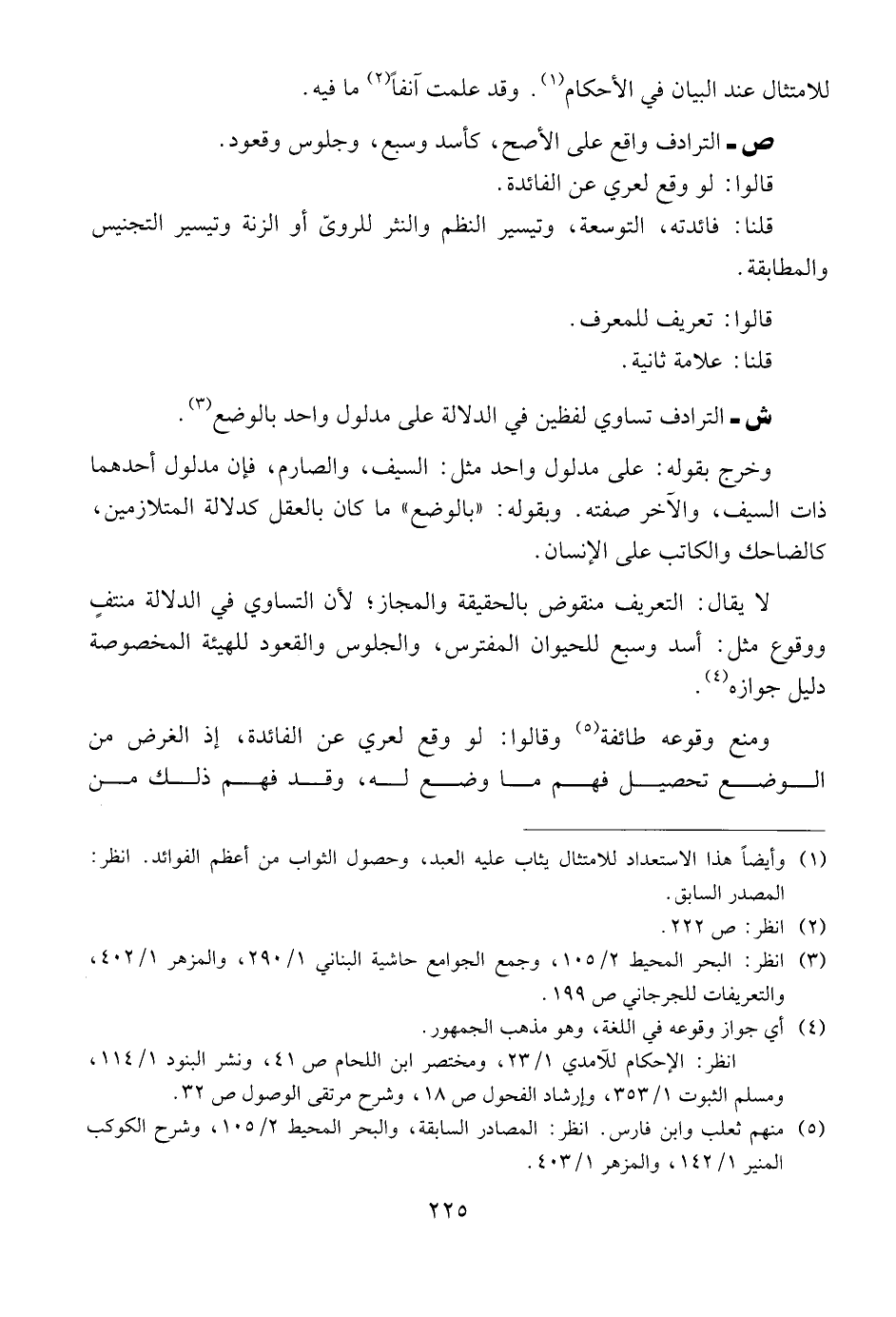 لا يقال: التعريف منقوض بالحقيقة والمجاز؛ لأن التساوي في الدلالة منتف ووقوع مثل: أسد وسبع للحيوان المفترس، والجلوس والقعود للهيئة المخصوصة دليل جوازه.